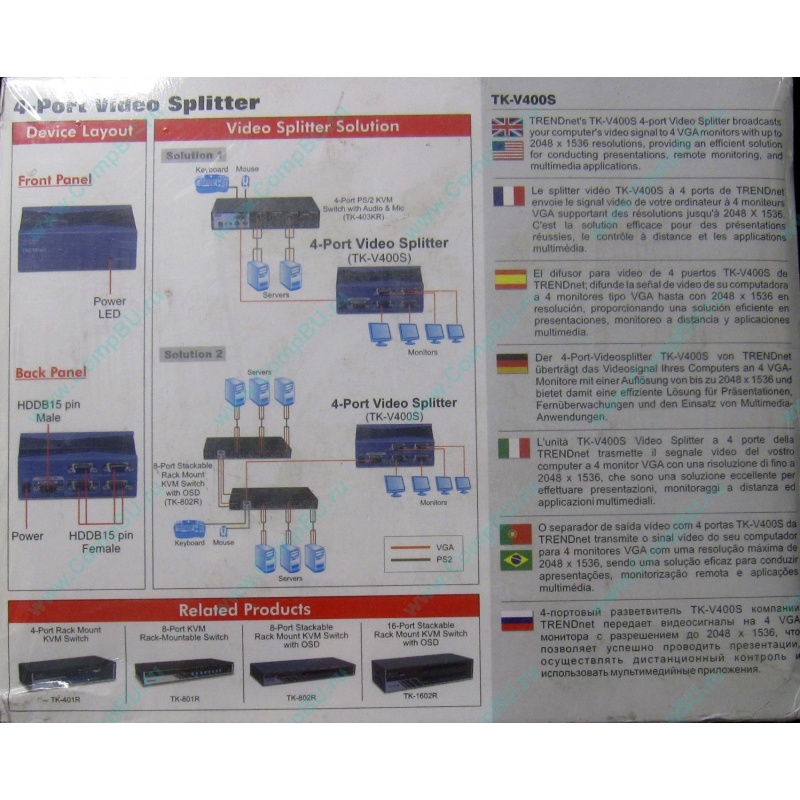 НОВЫЙ ЗАПЕЧАТАННЫЙ 4-портовый видеоразветвитель TRENDnet TK-V400S позволяет передать видеосигнал на 4 VGA монитора с разрешением до 2048x1536.